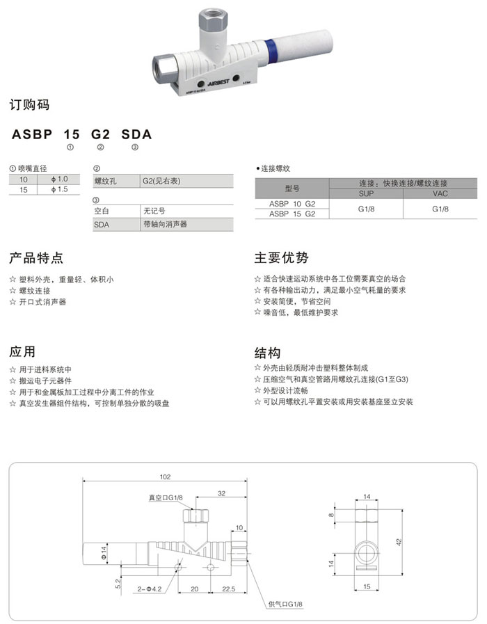 产品标题:ASBP10,ASBP系列真空发生器,真空设备,真空元件