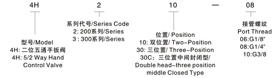 ■ 型号命名![]() ■ 举例 ▲ 欲订购接管螺纹为G1/8",二位三通4H2系列手扳阀,其正确的订购码为:4H210-06 ■ 技术参数 | ||||||||||||||||||||||||||||||||||||||||||||||||||||||||||||||||